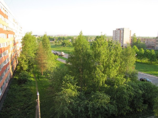 хрущевки..мммм..у меня дома примерно такой же вид - деревья в зелени и пара фонарей = )