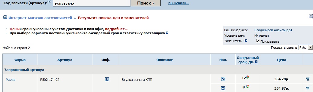 может там какая-то еще запчасть дополнительная под этот артикул попадает? вобщем зарегайся на exist.ru там тебе выдадут личного менеджера, попробуй ему позвонить. я на экзисте давно зареган, но никогда ничего не покупал. или тут может кто подскажет. на маздофоруме спрашивал?