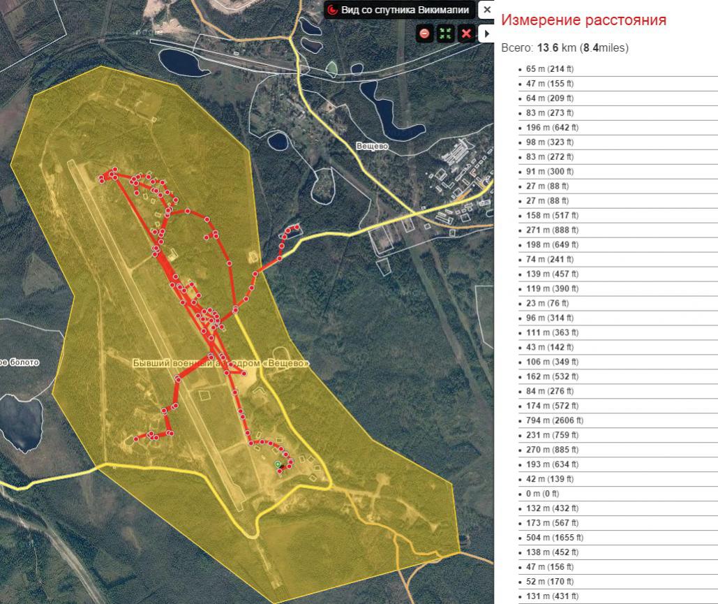 Общий пробег на игре от точки к точке напрямую, не учитывая пробега по локации: