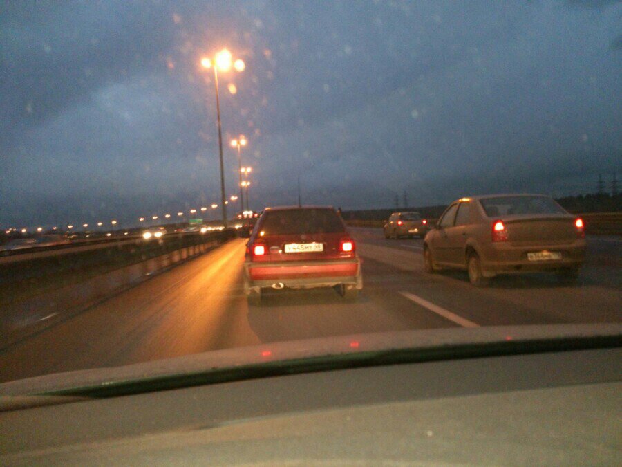 Привет белому тигуану на большеохтинском мосту прямо сейчас номер 727... Меня не признал... Я на тестовом гольфе был