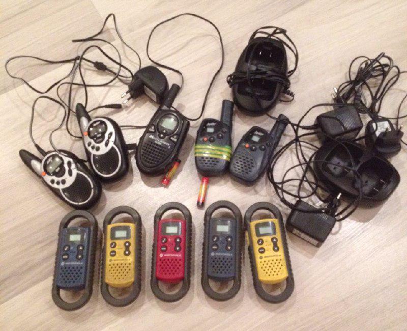 За пару пачек каких-нибудь вкусных печенек отдам 10 раций, верхний ряд - аккумуляторные (зарядки прилагаются), нижний - на пальчиковых батарейках.